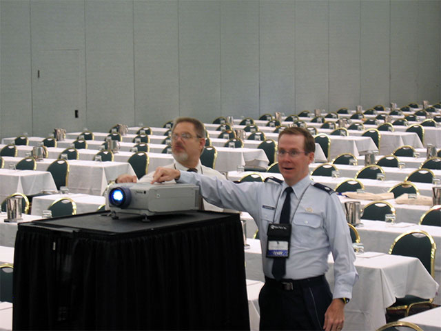 adjusting theprojector and verifying the A/V will work for the closing session.